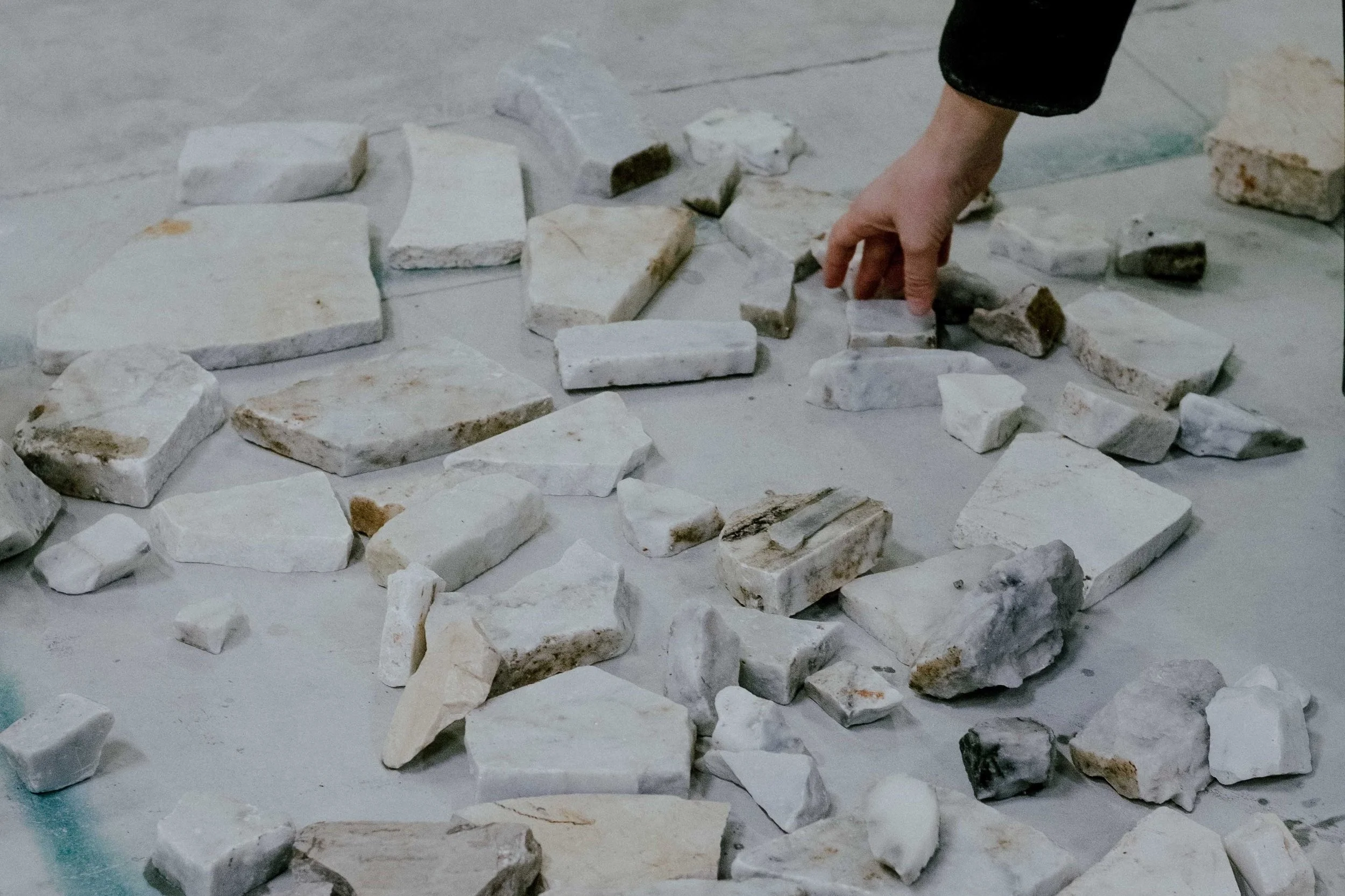 The artificial stones were conceived as a fragment of a collection to be expanded, if necessary, over time: GAMeC is preparing to enter its new headquarters, and from this perspective, the project proposes an element of possible continuity. We thought of each object as a nomadic fragment, at ease both in the medieval GAMeC building today and in the rooms of the new headquarters, currently under construction.